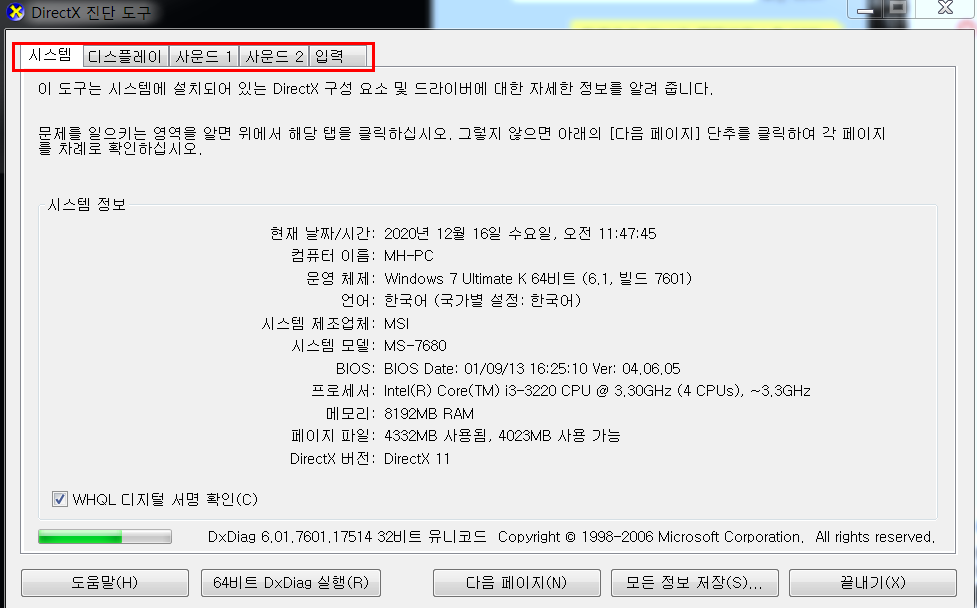 내 컴퓨터의 사양을 확인하는 방법에 대해서